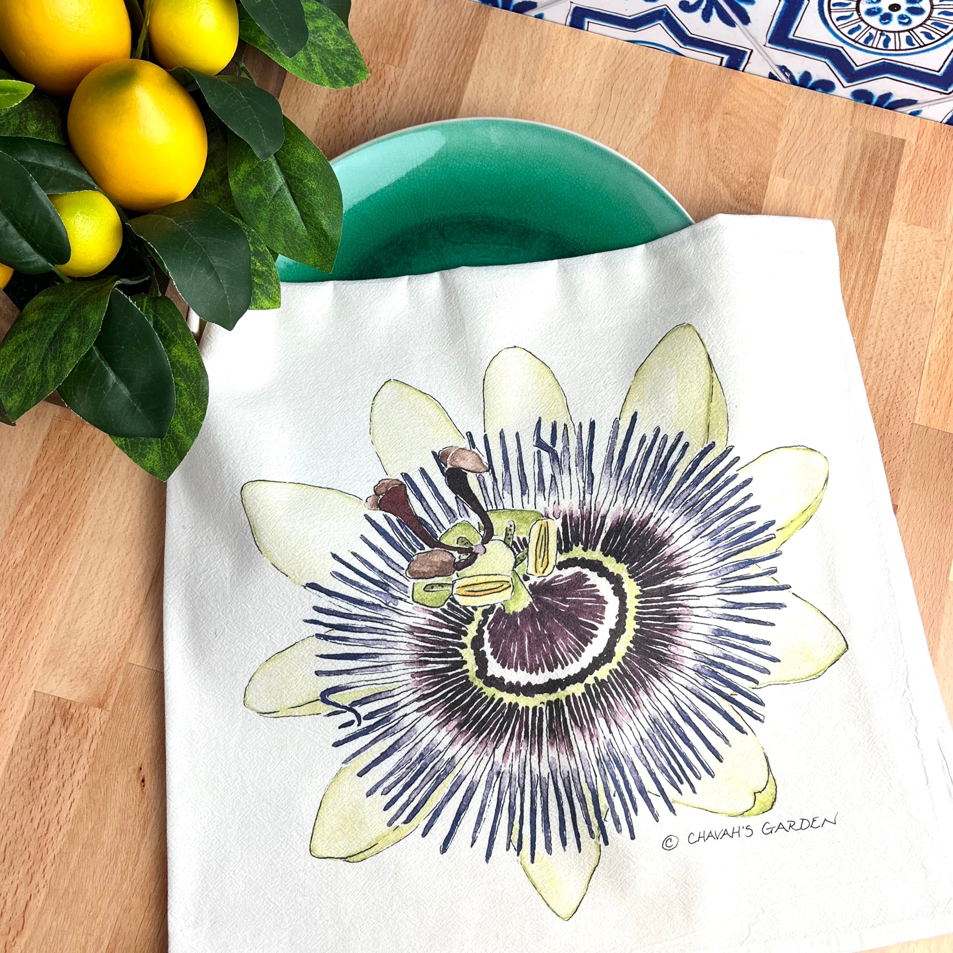 Flour Sack Tea Towels, Passionflower, Garden Theme