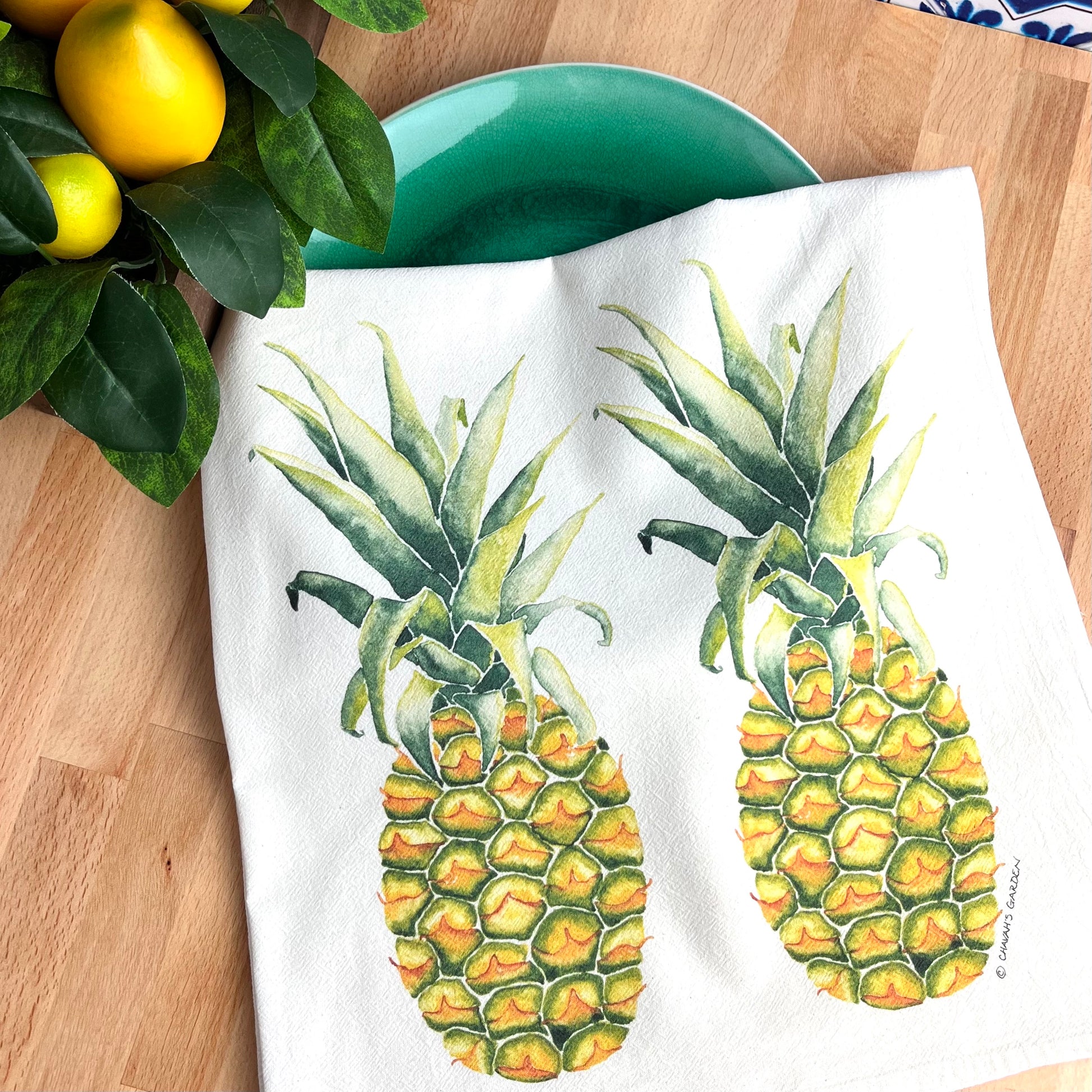 Flour Sack Tea Towels, Pineapple, Garden Theme
