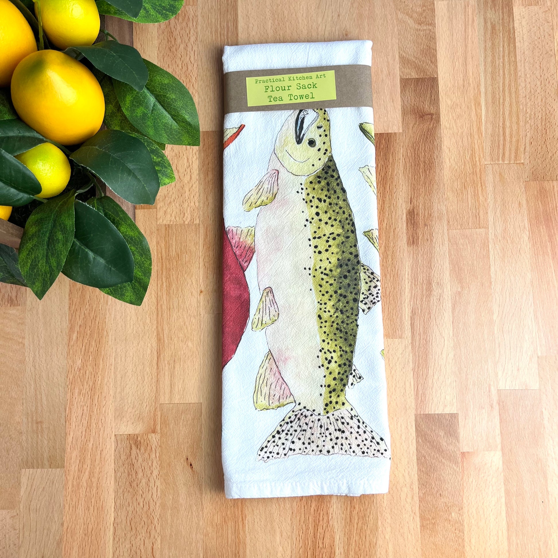 Flour Sack Tea Towels, Salmon, Coastal Theme