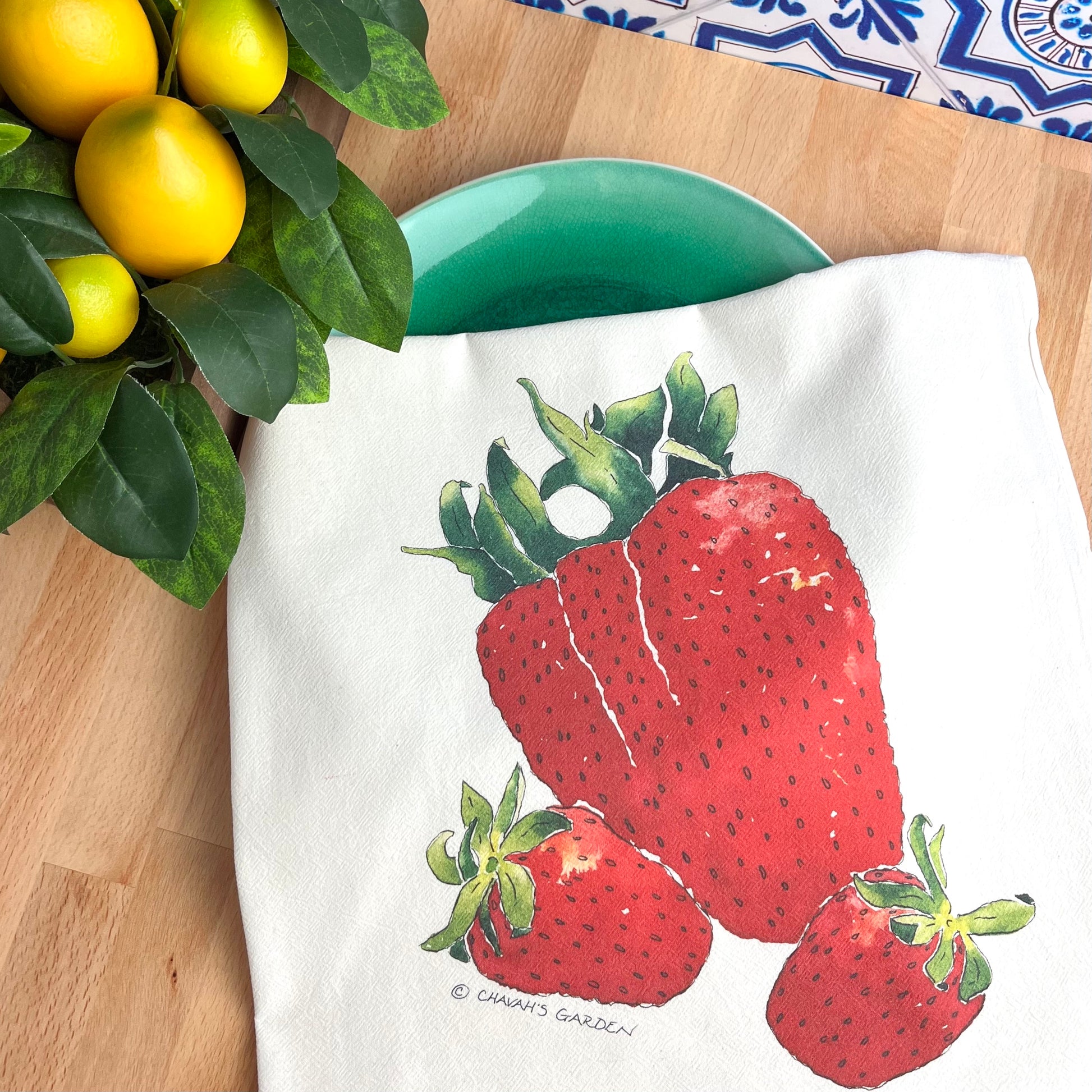 Flour Sack Tea Towels, Strawberry, Garden Theme