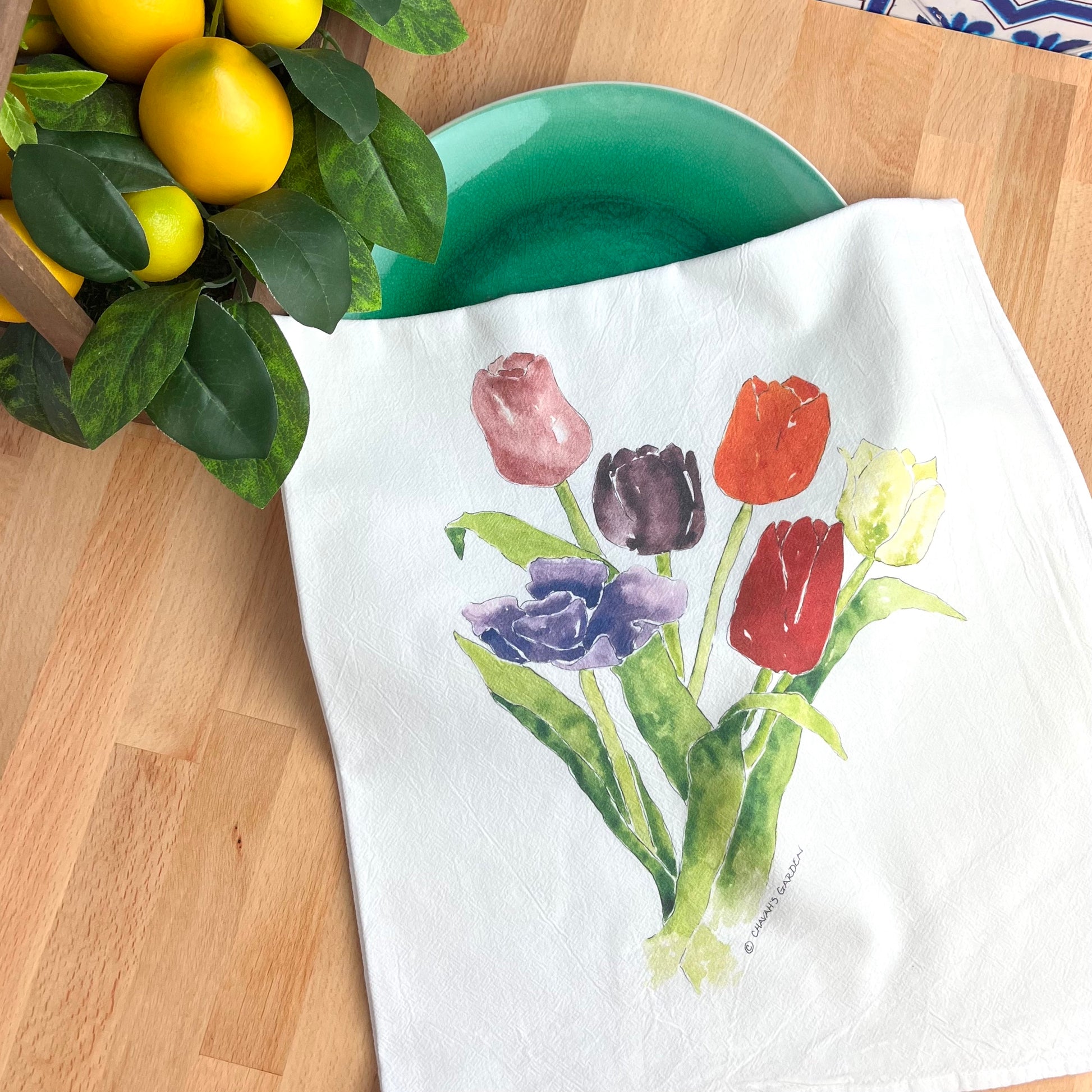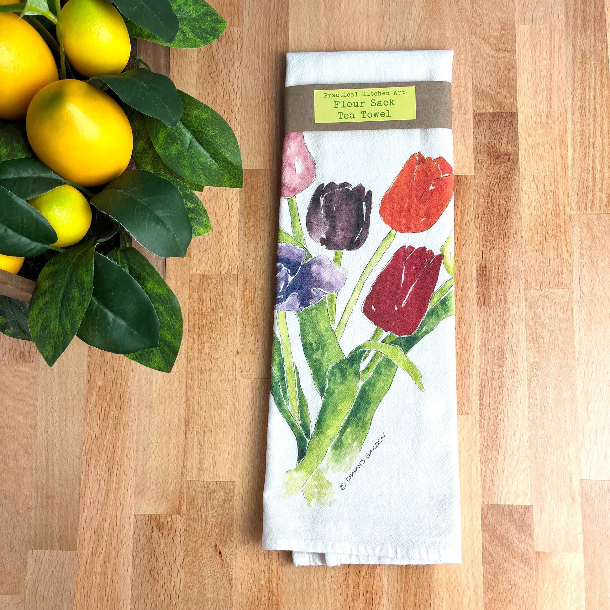 Flour Sack Tea Towels, Tulips, Garden Theme