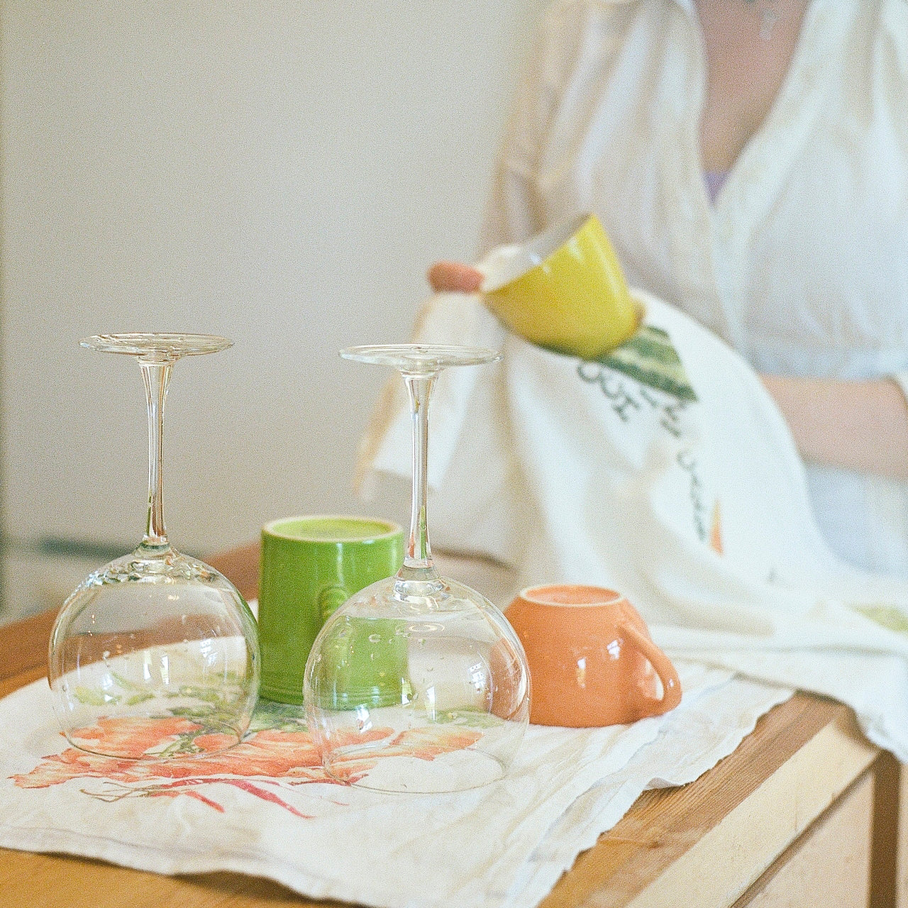 My watercolor paintings are printed onto all my fabric goods in my studio with water-based, eco-friendly ink.