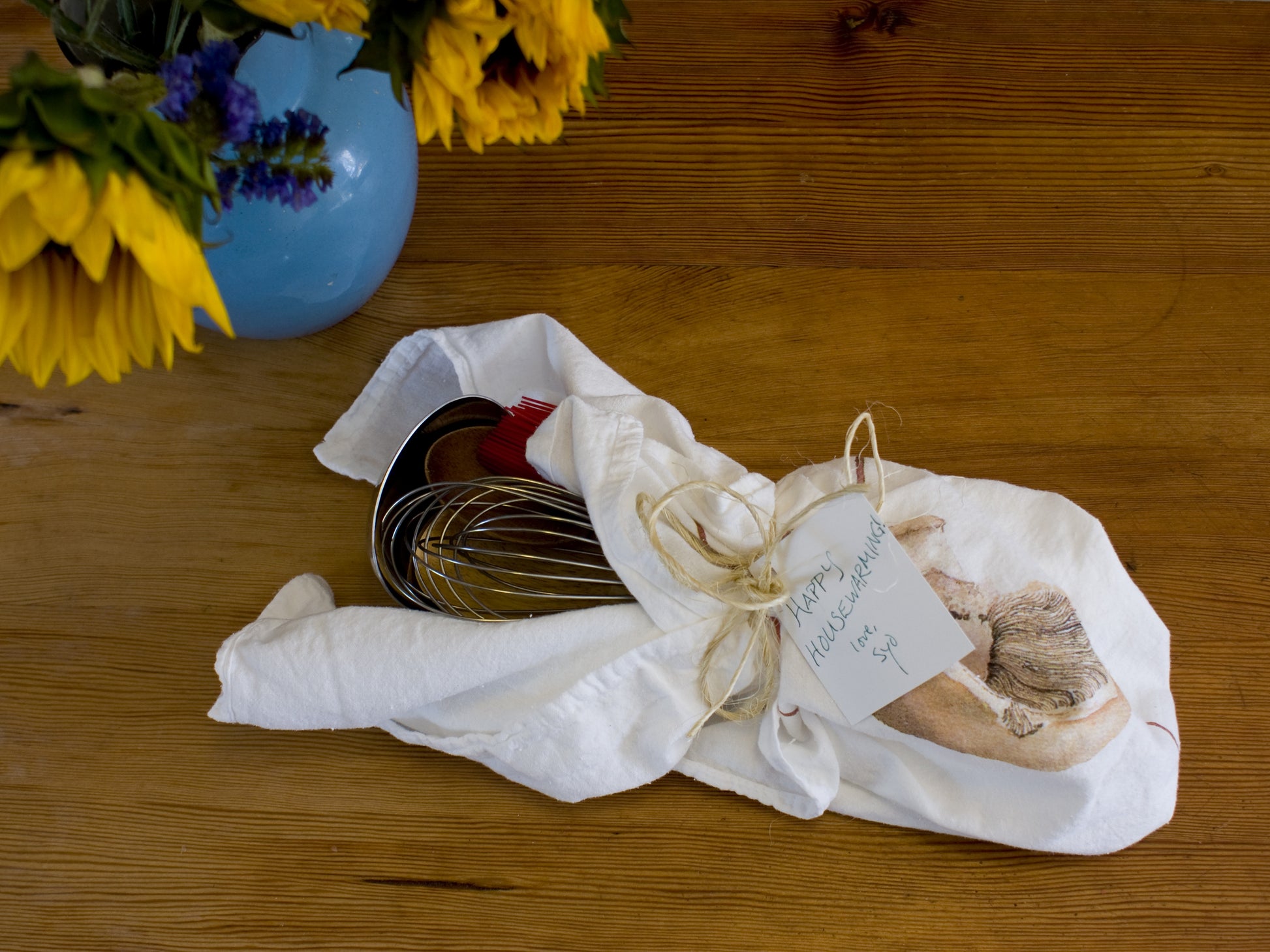 My towels are 100% cotton flour sack and measure 27 x 27 in (70 cm x 70 cm) and fold up into a perfect square on your oven handle.